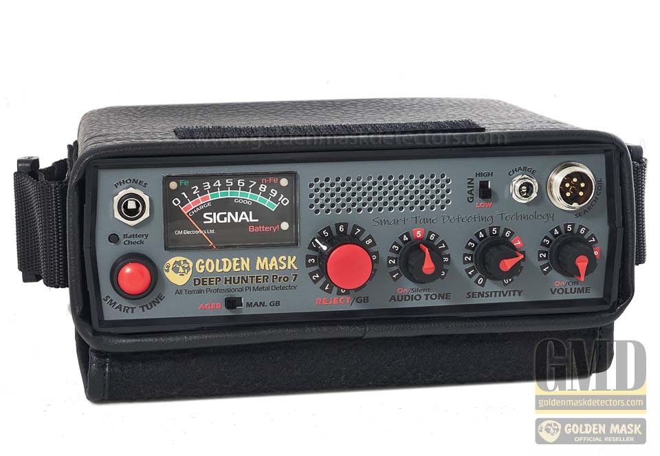 The Golden Mask Deep Hunter Pro 7 is a powerful pulse induction metal detector featuring SMART TUNE technology for greater depth and stability. With automatic and manual ground balance, trash reject control, and precise metal identification, it delivers reliable performance for both beginners and professionals.